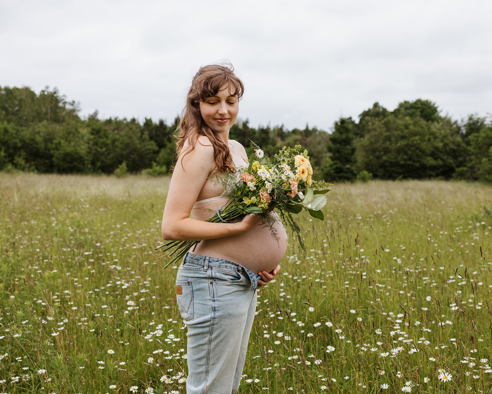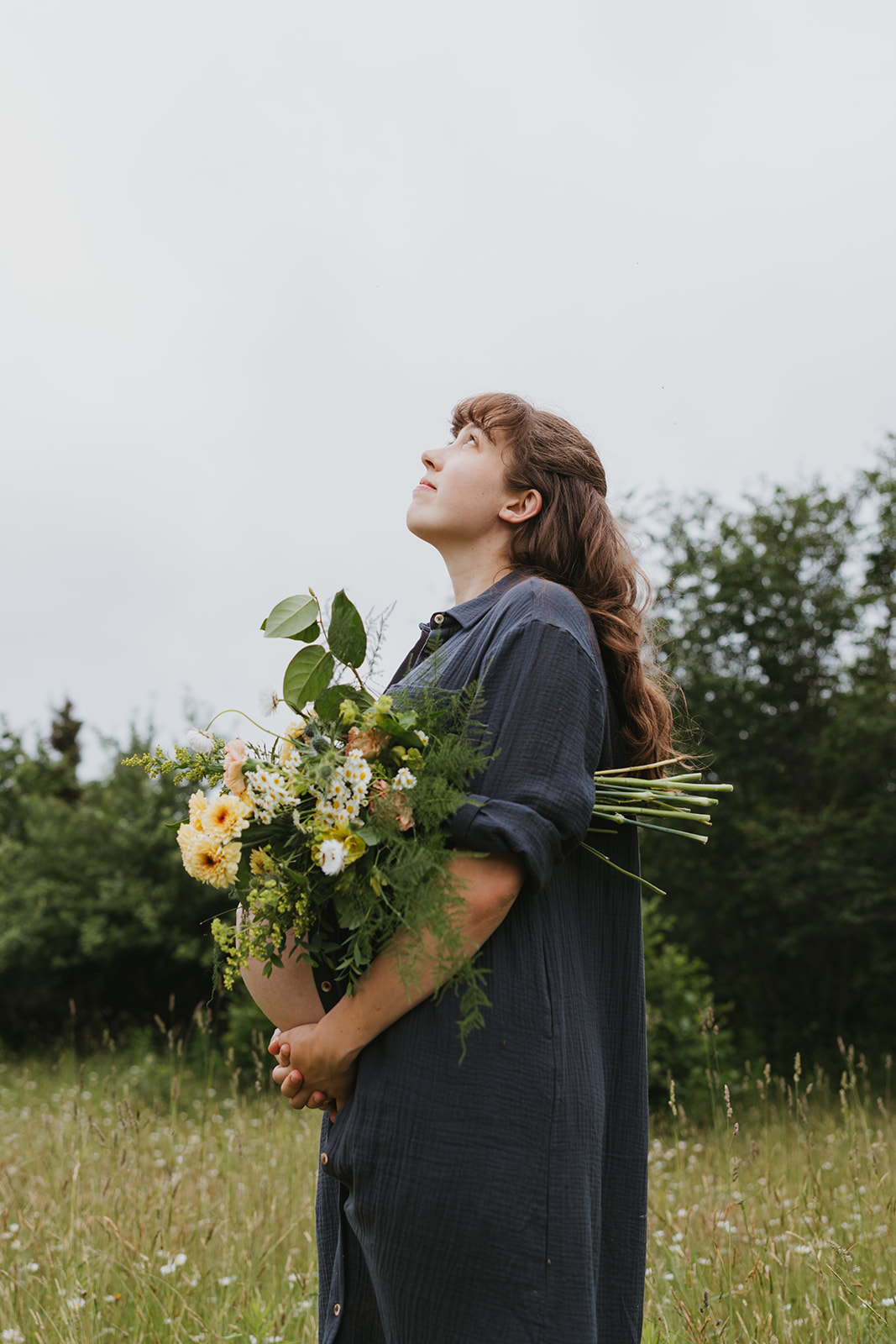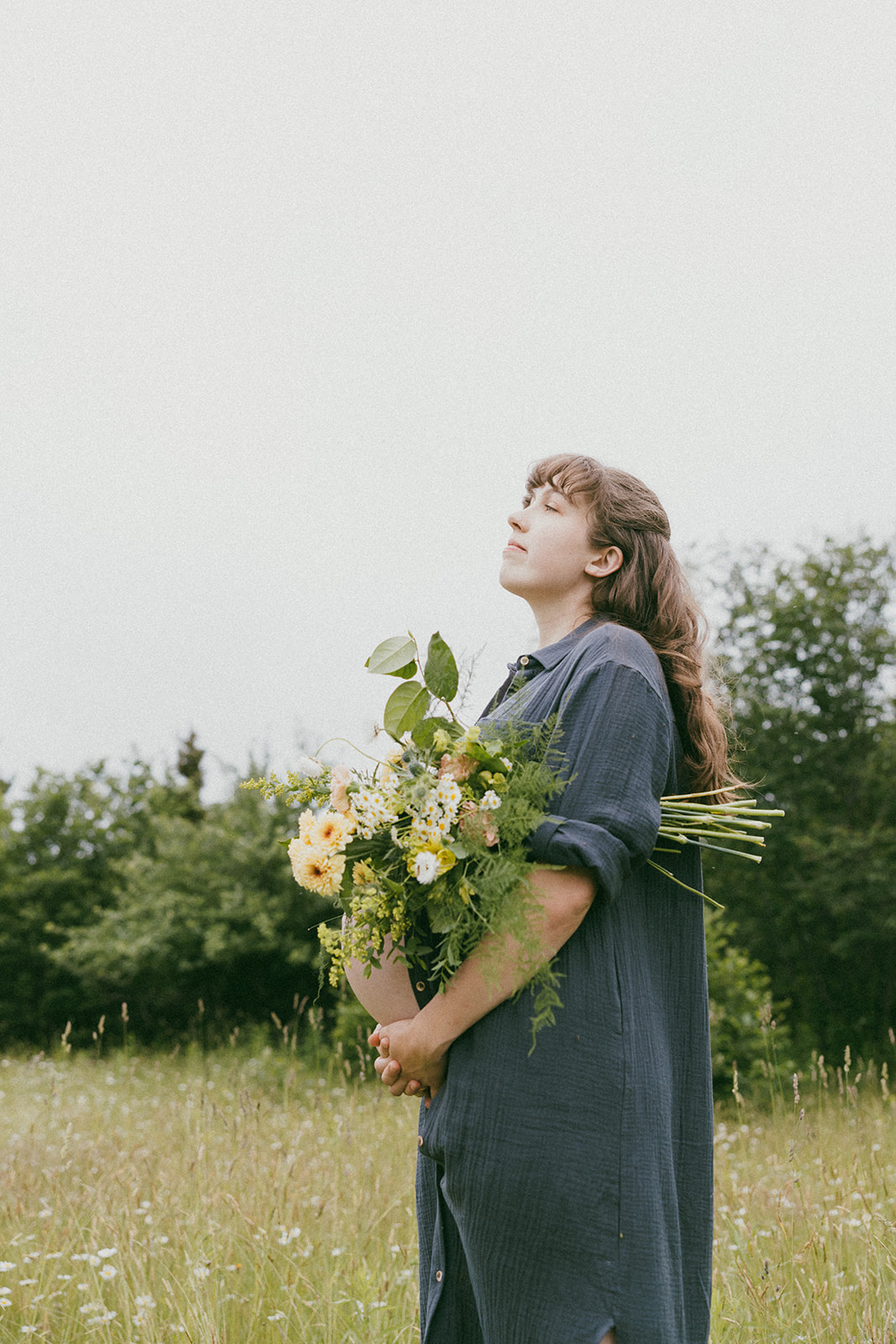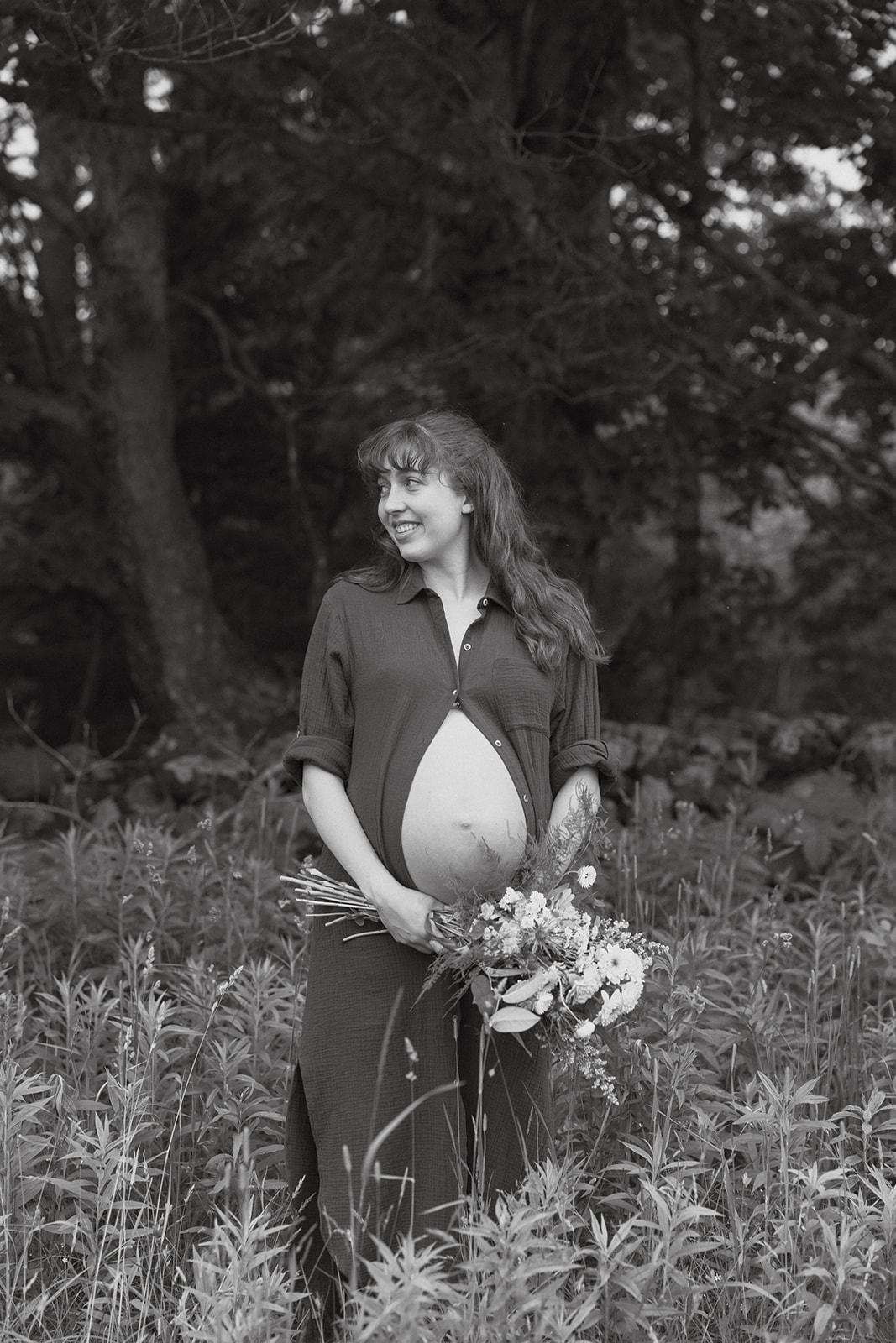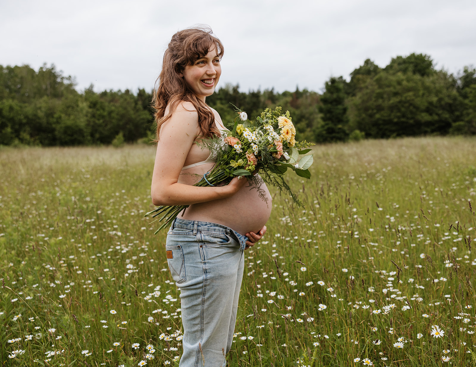 As it turned out, the field did have its own mix of grasses and natural growth, which paired easily with the bouquet. We used the flowers throughout the session, sometimes more prominently and sometimes more subtly, depending on the moment.