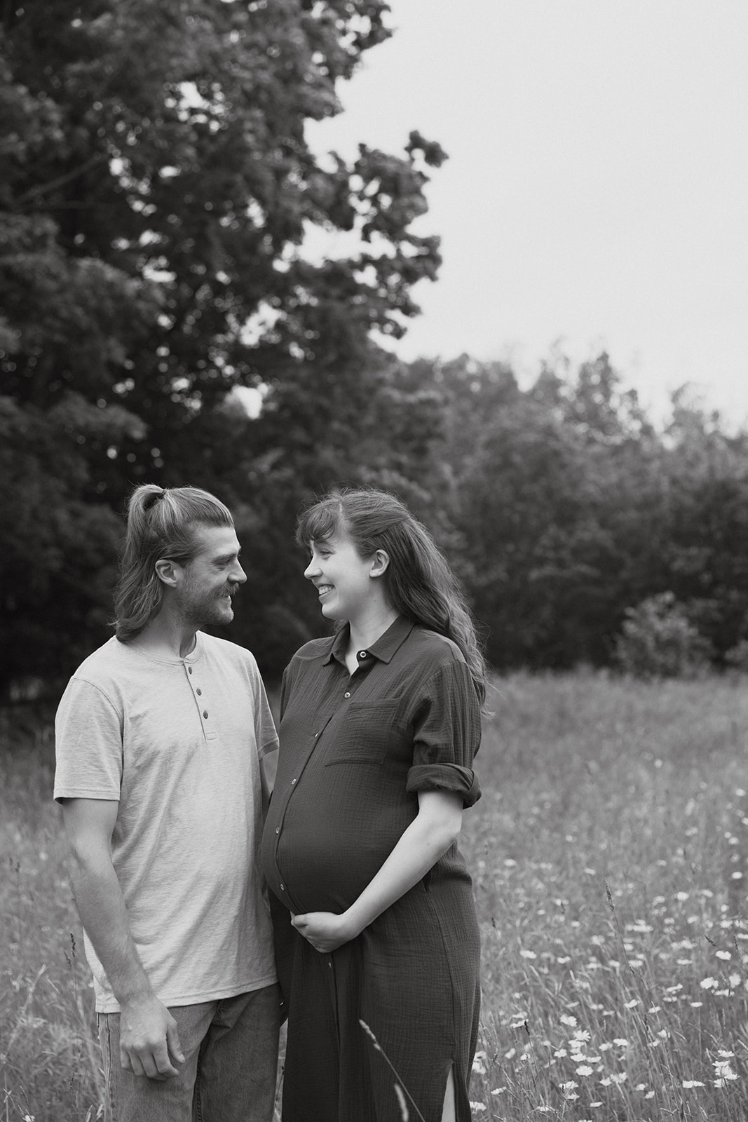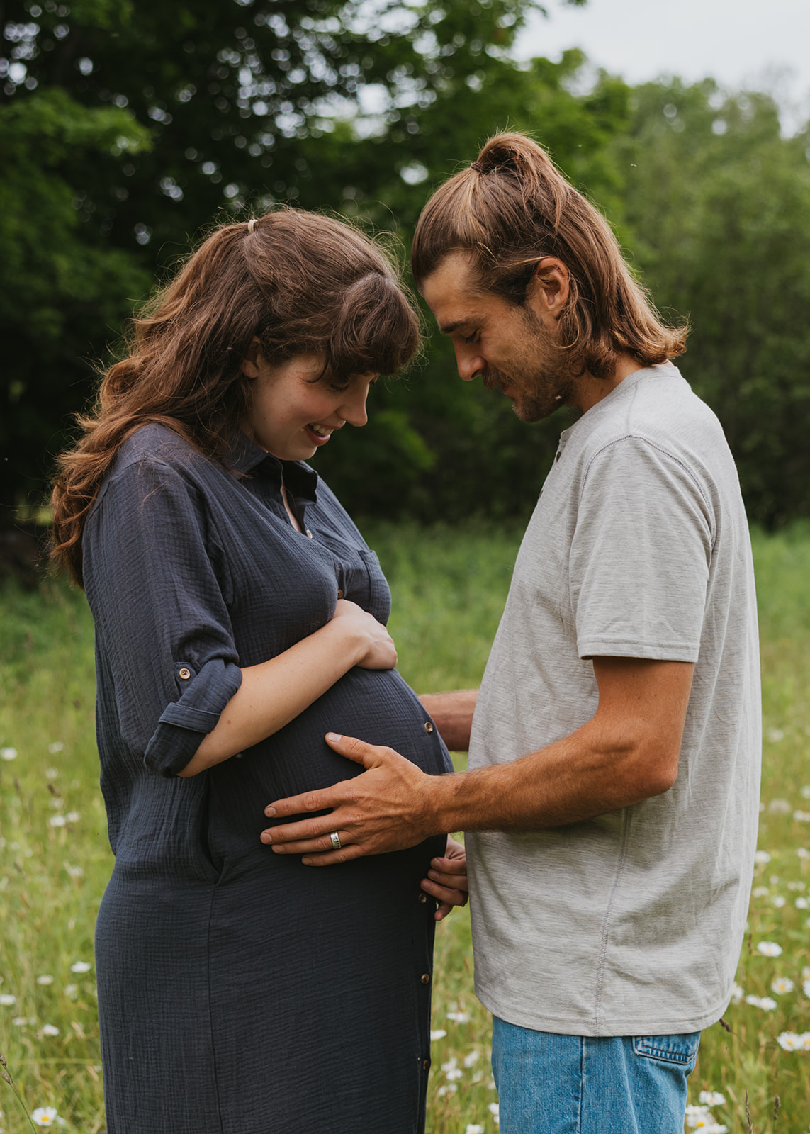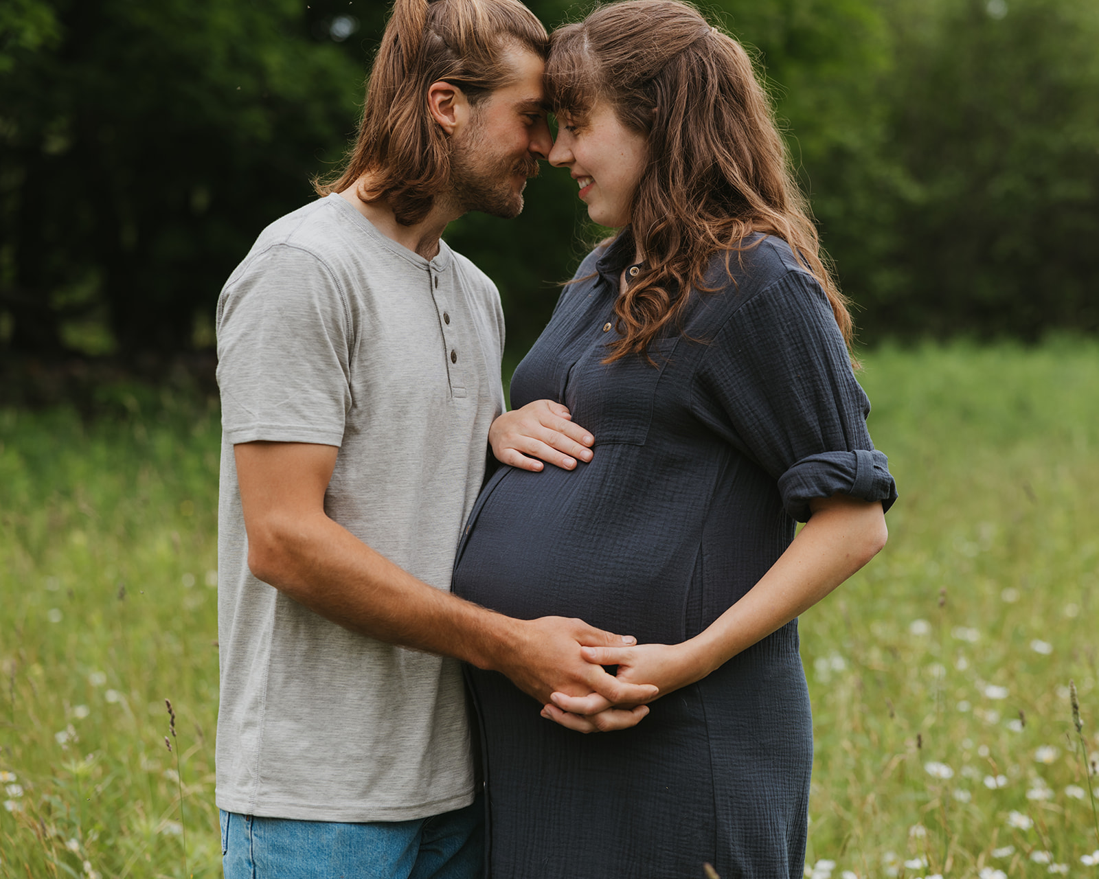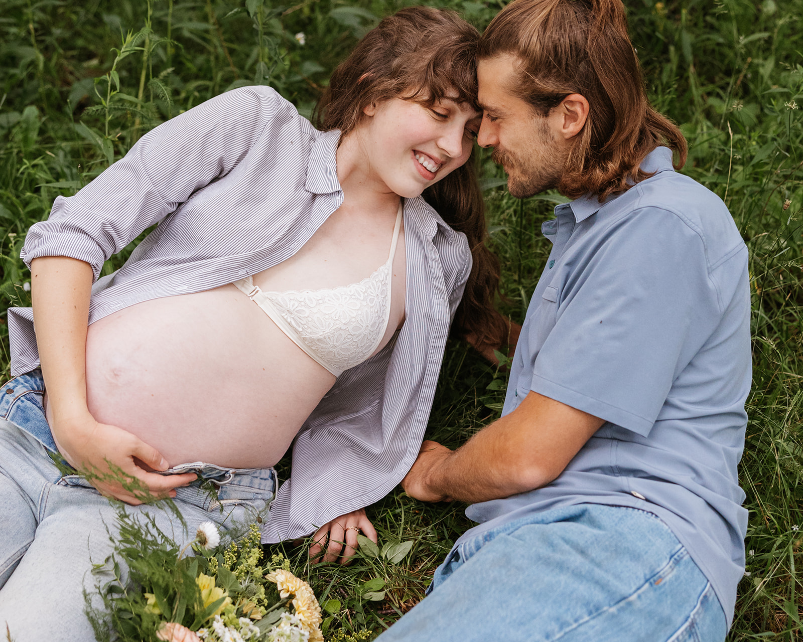 Audra and Kyle decided to have their maternity session on their own property. The field behind their house offered open space, tall grasses, and a mix of natural textures that worked well for a summer maternity session.