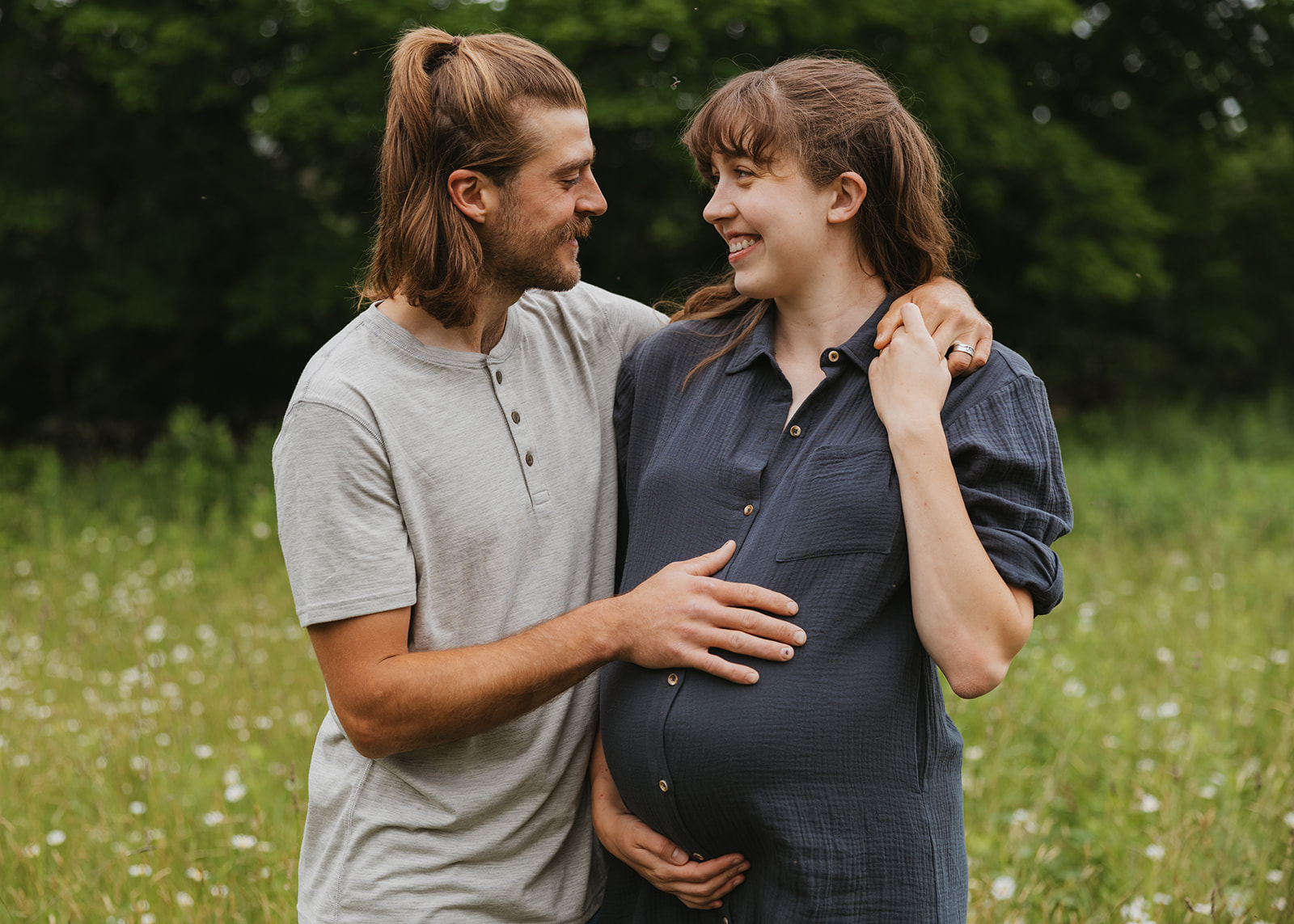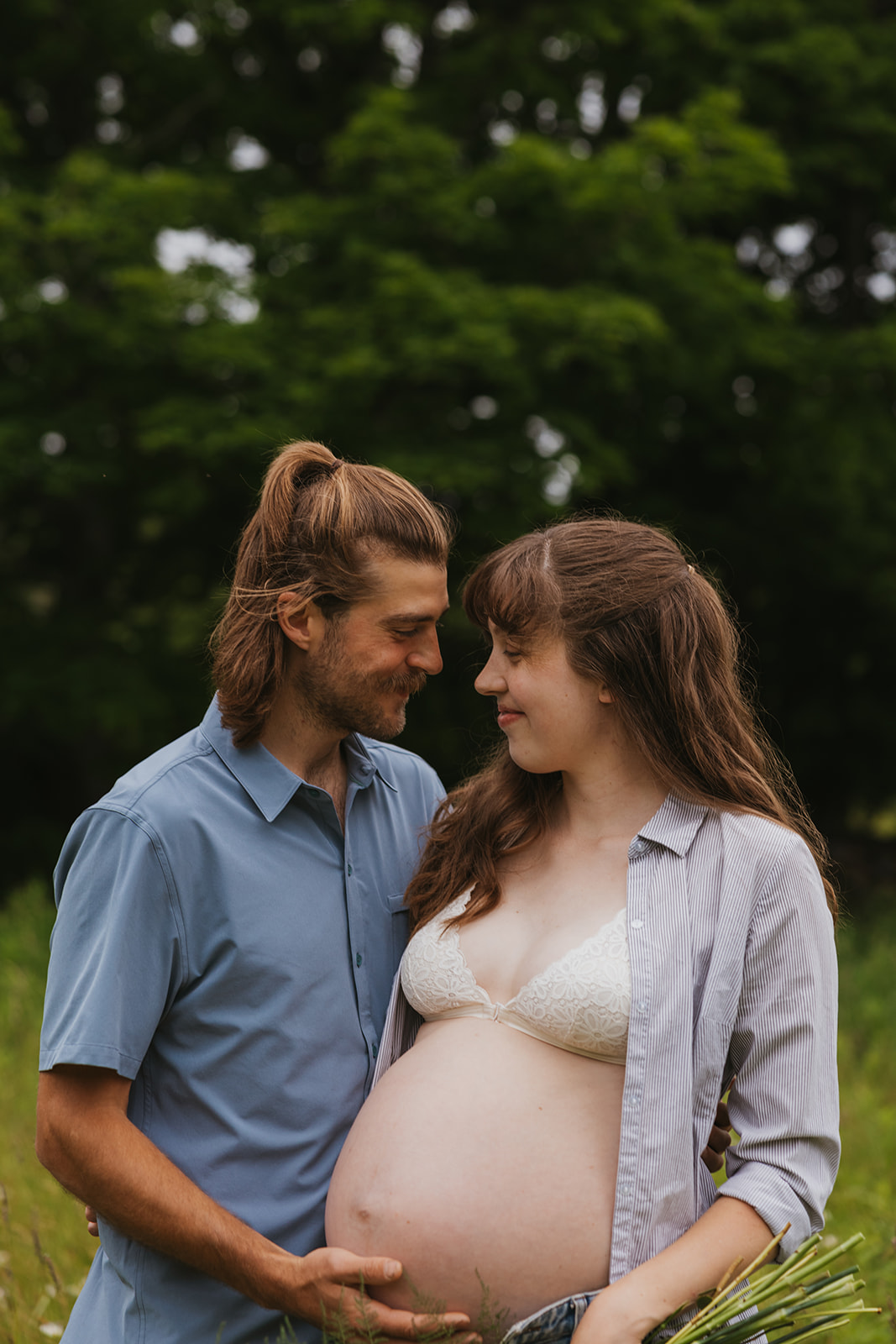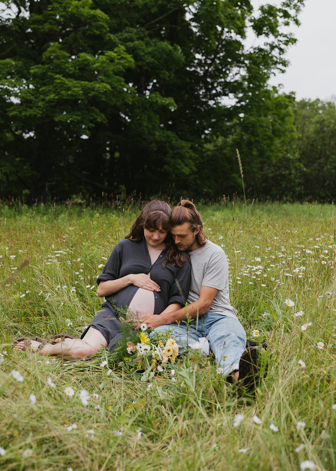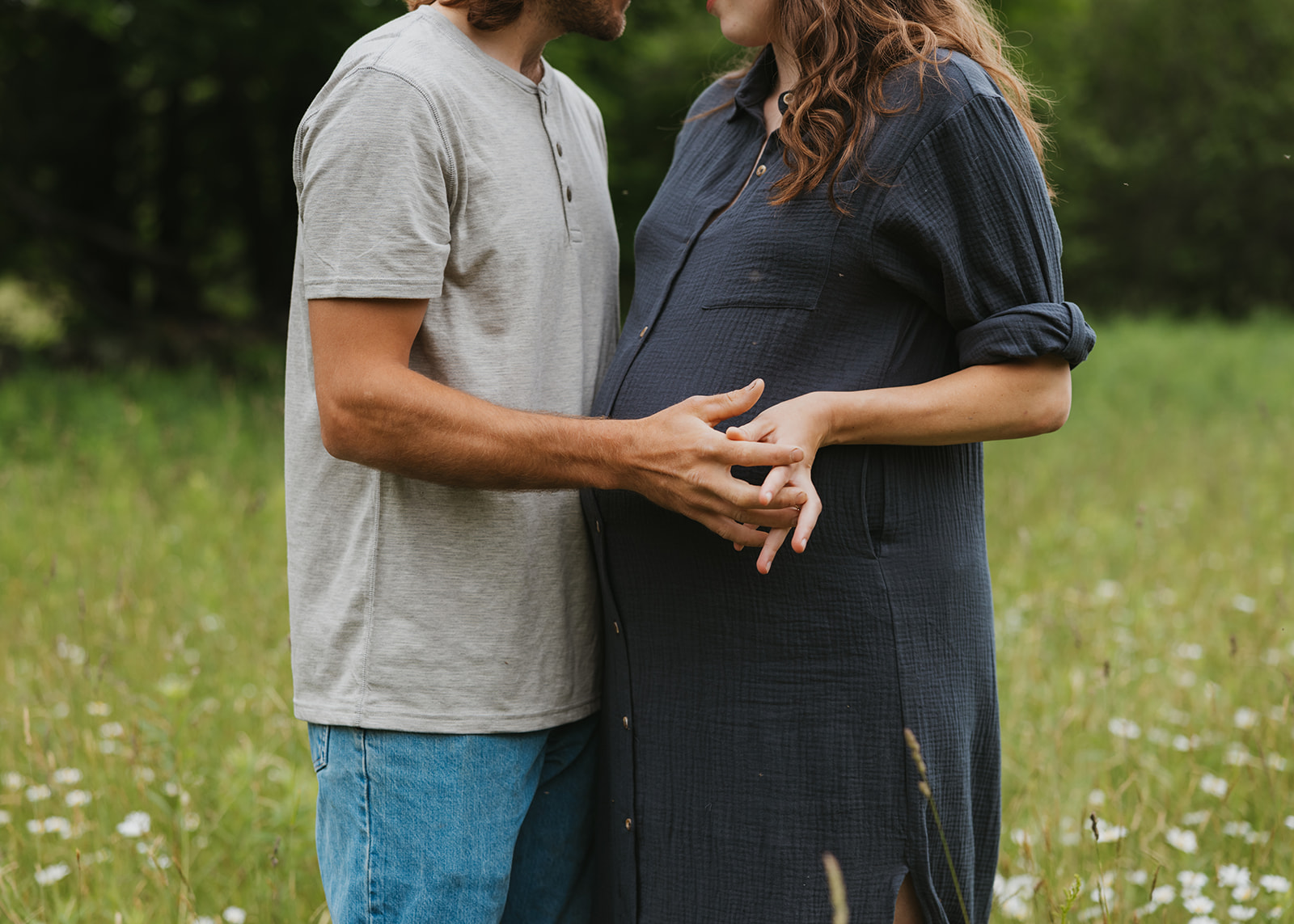Audra and Kyle decided to have their maternity session on their own property. The field behind their house offered open space, tall grasses, and a mix of natural textures that worked well for a summer maternity session.