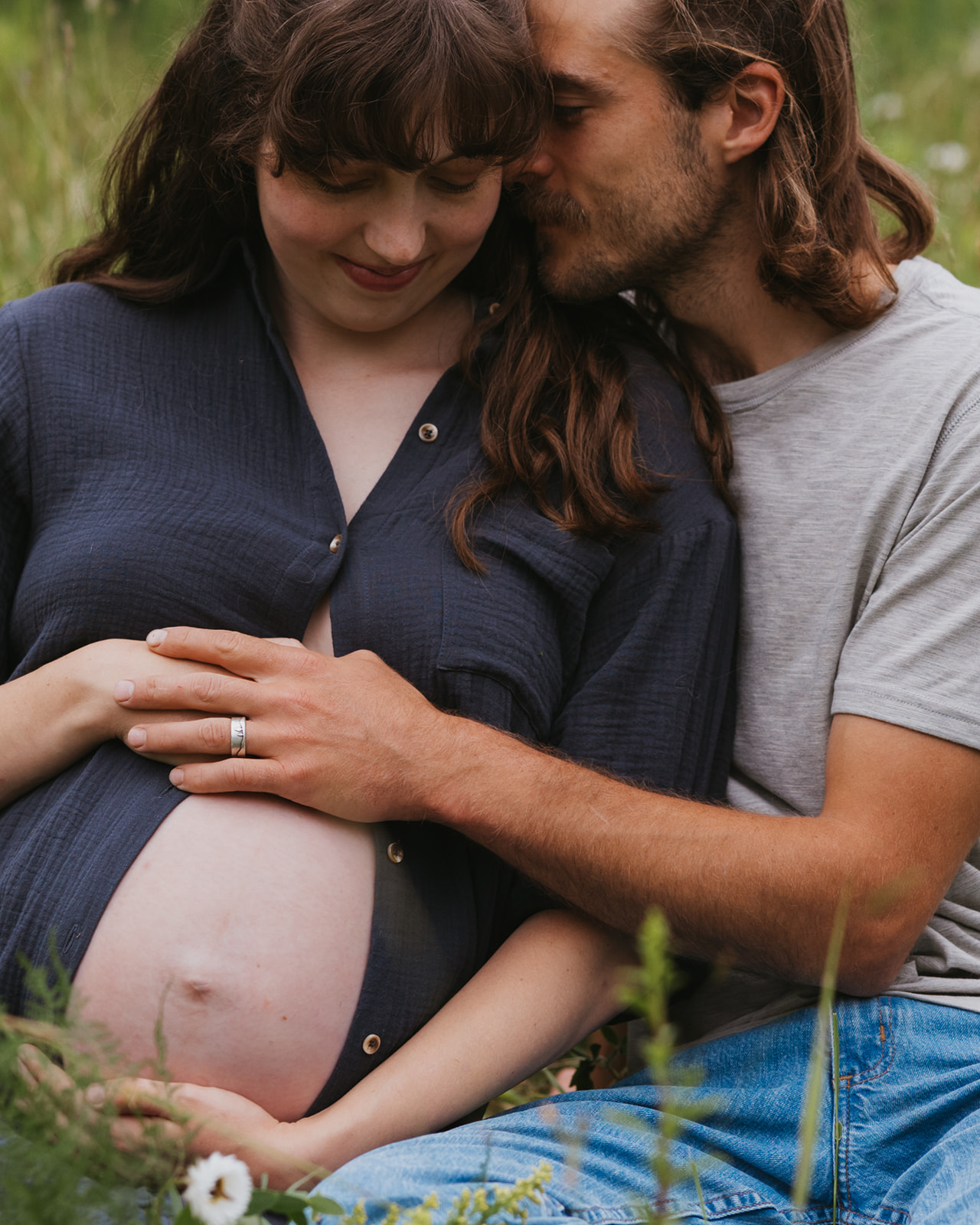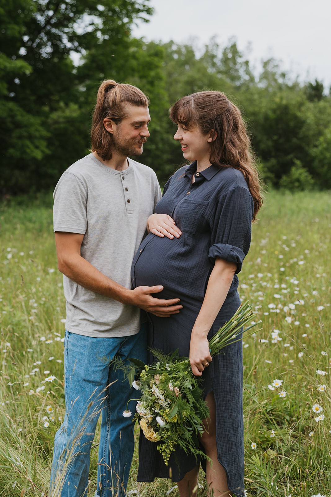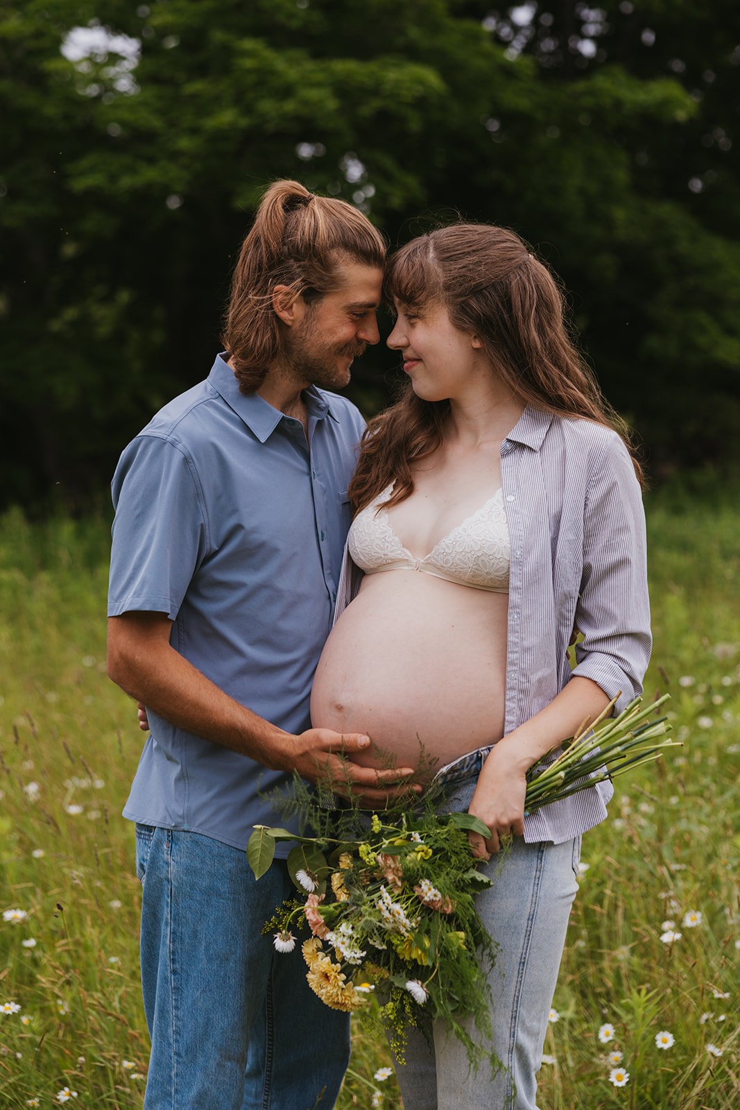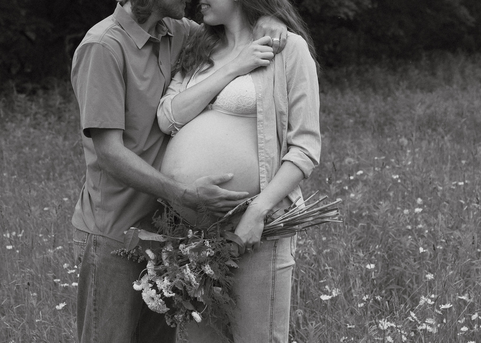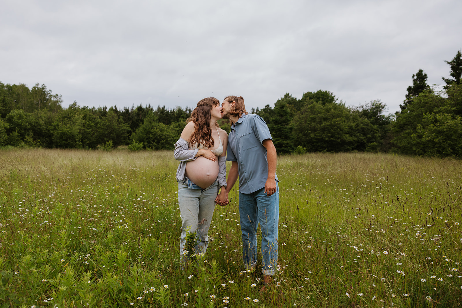 Audra and Kyle decided to have their maternity session on their own property. The field behind their house offered open space, tall grasses, and a mix of natural textures that worked well for a summer maternity session.