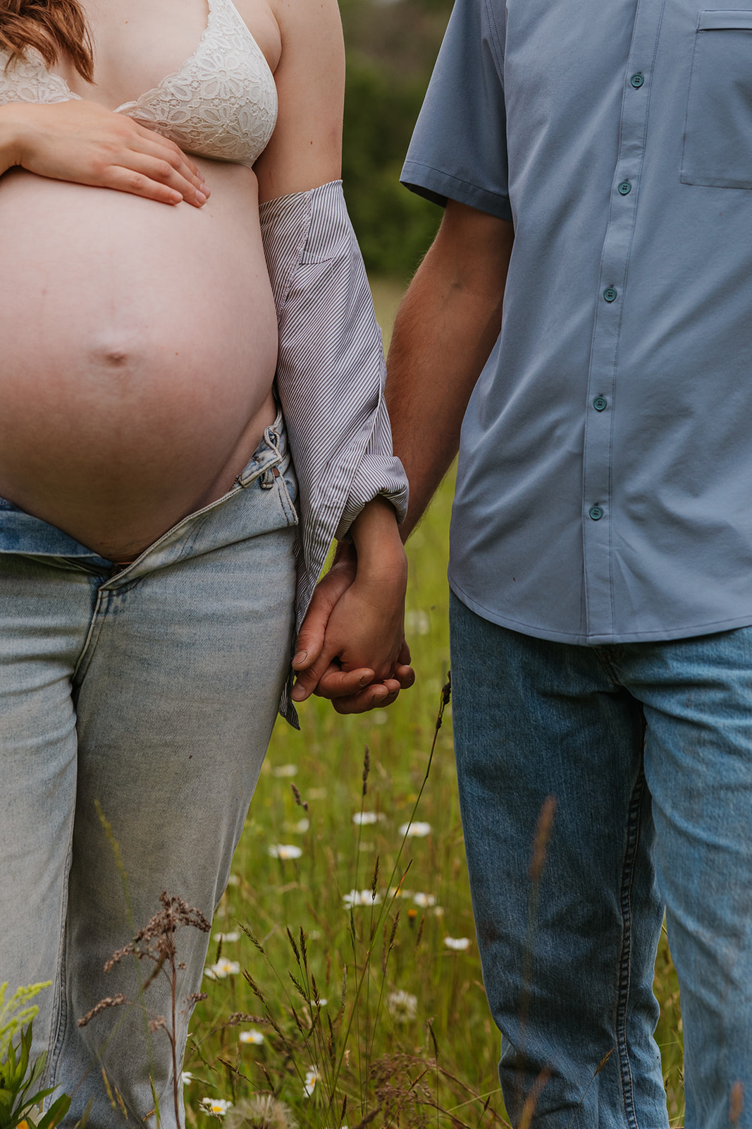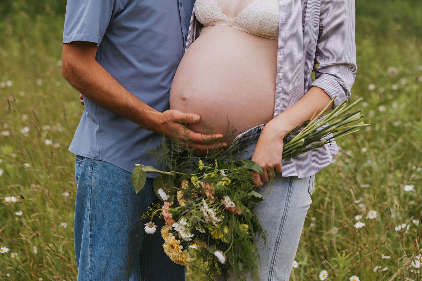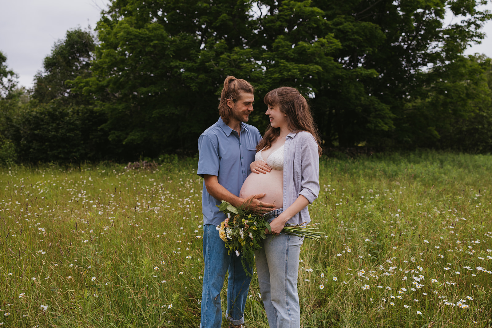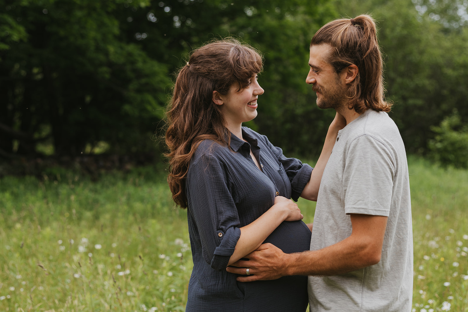 Audra and Kyle decided to have their maternity session on their own property. The field behind their house offered open space, tall grasses, and a mix of natural textures that worked well for a summer maternity session.