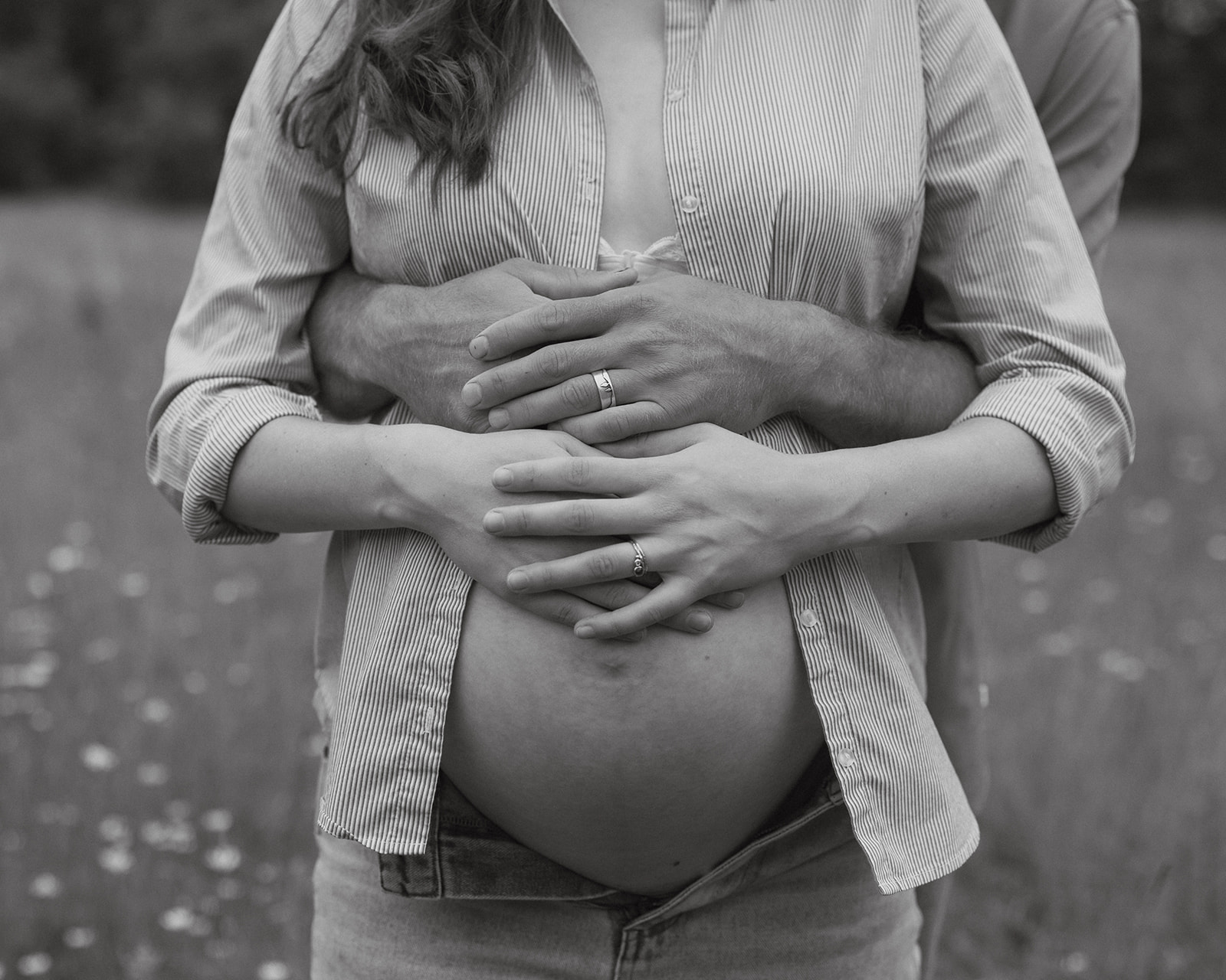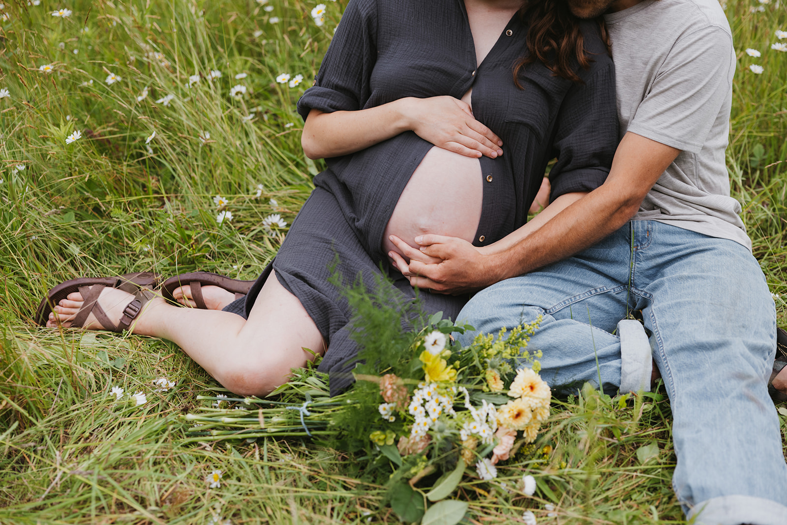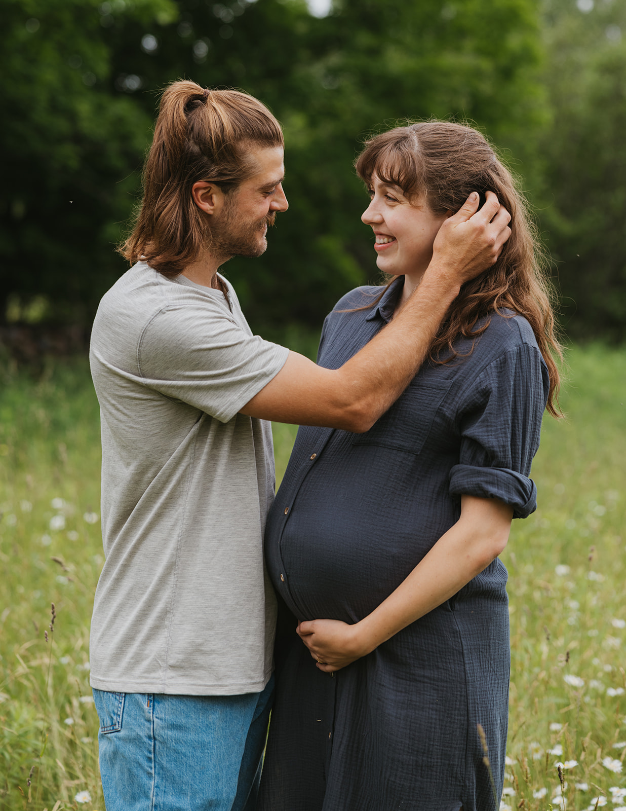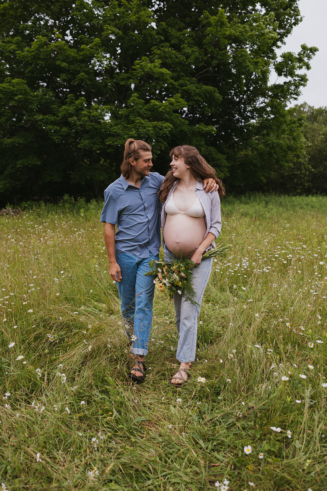 Audra and Kyle decided to have their maternity session on their own property. The field behind their house offered open space, tall grasses, and a mix of natural textures that worked well for a summer maternity session.