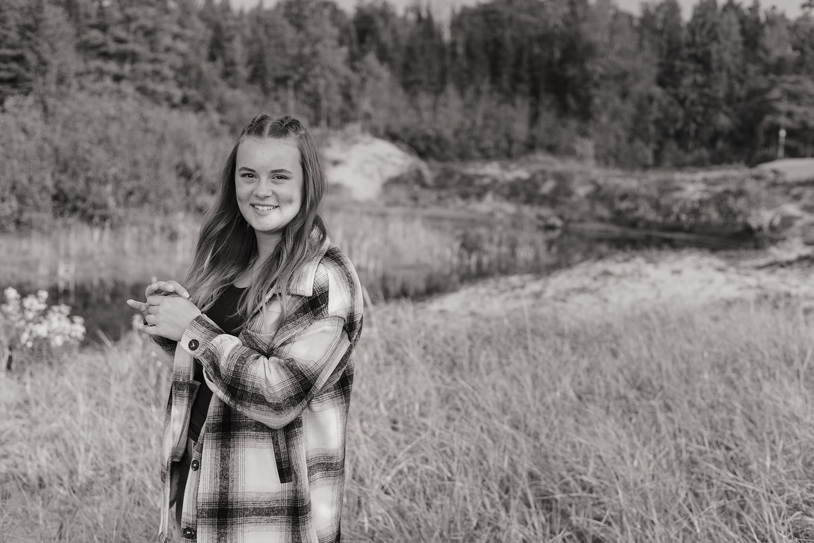 This was a senior session designed to feel familiar and grounded. Abi chose this location because she spent many summers at Gitche Gumee Bible Camp just down the road, and her grandparents own property nearby along Lake Superior.
