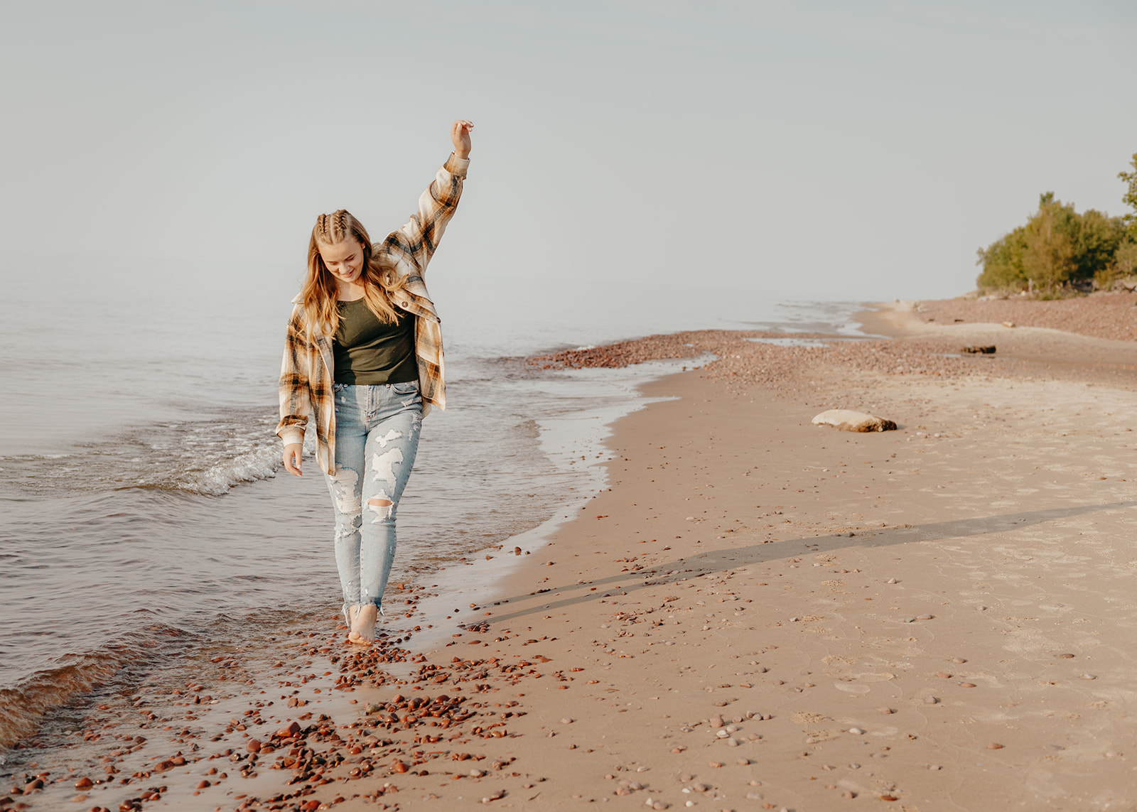 This senior session was for Abi, a high school graduate whose connection to the Keweenaw runs deep. We photographed her senior photos in Eagle River, Michigan, beginning along the Lake Superior shoreline at the Eagle River beach and finishing on her grandparents’ nearby property.