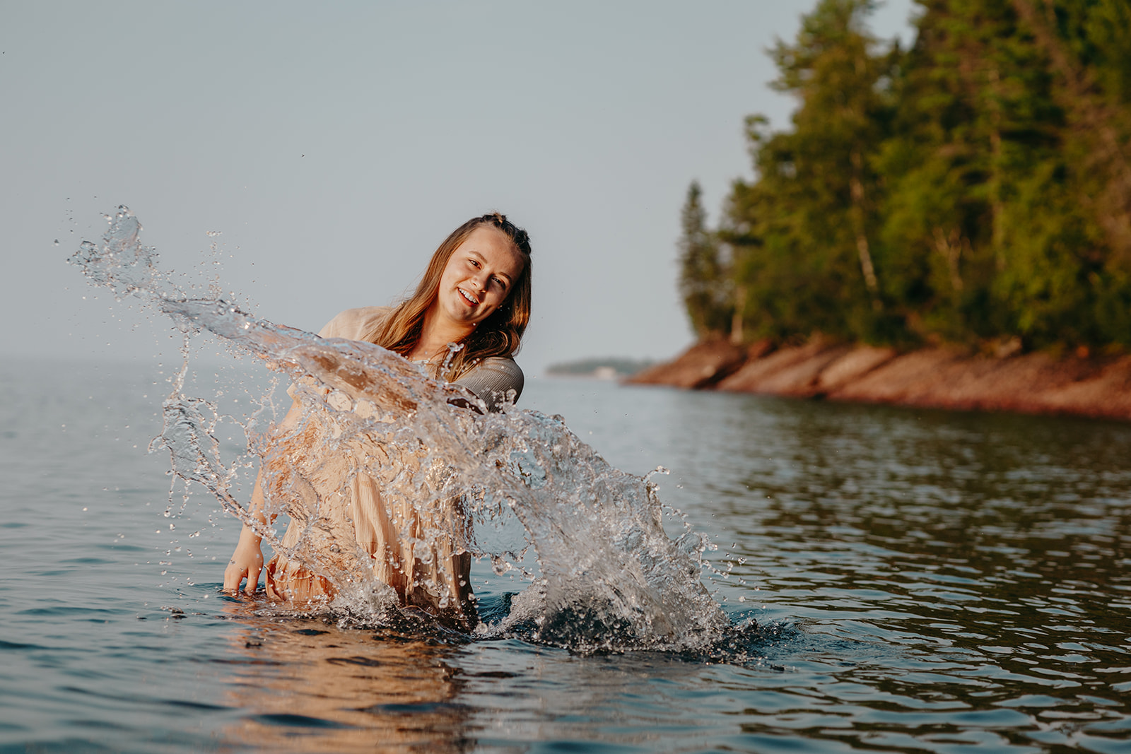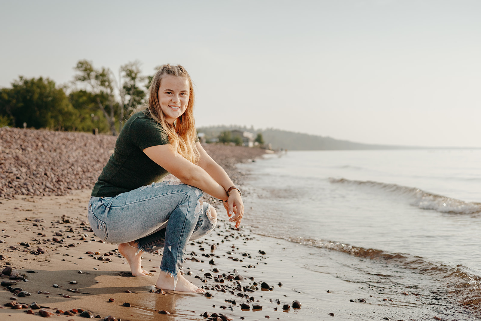 For Abi, this location worked especially well because of familiarity. She knows this stretch of shoreline well, and that comfort shows. Eagle River is also typically quieter in the evenings, which gave us space to move slowly without feeling rushed.