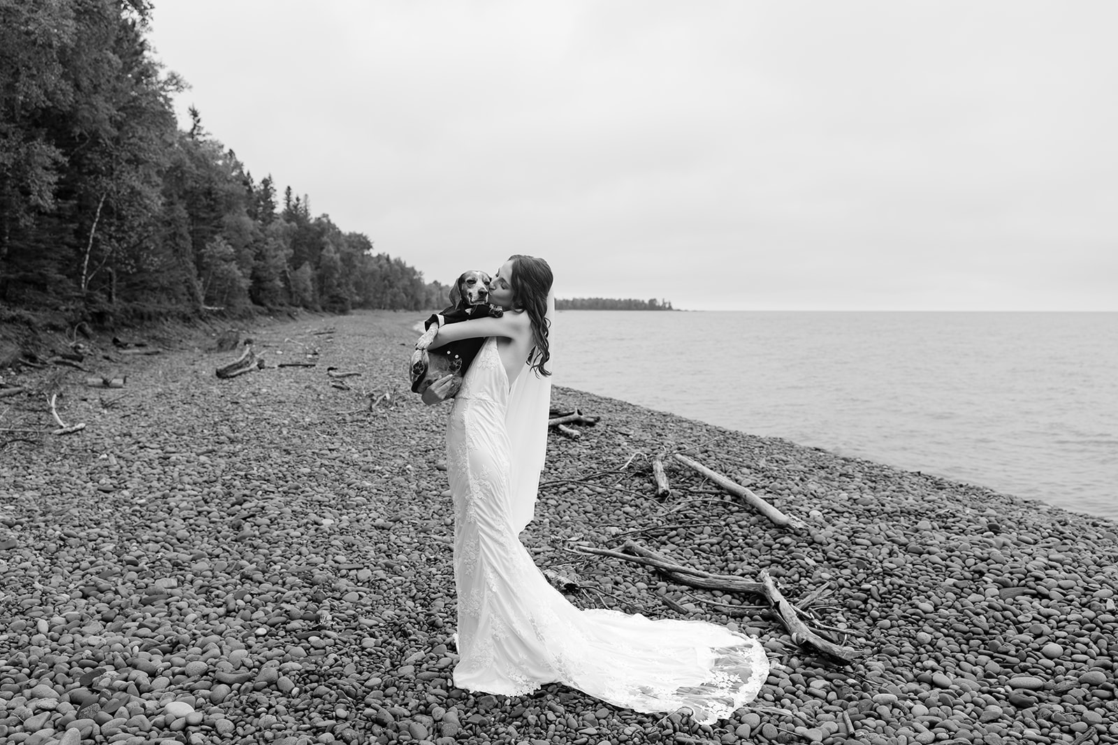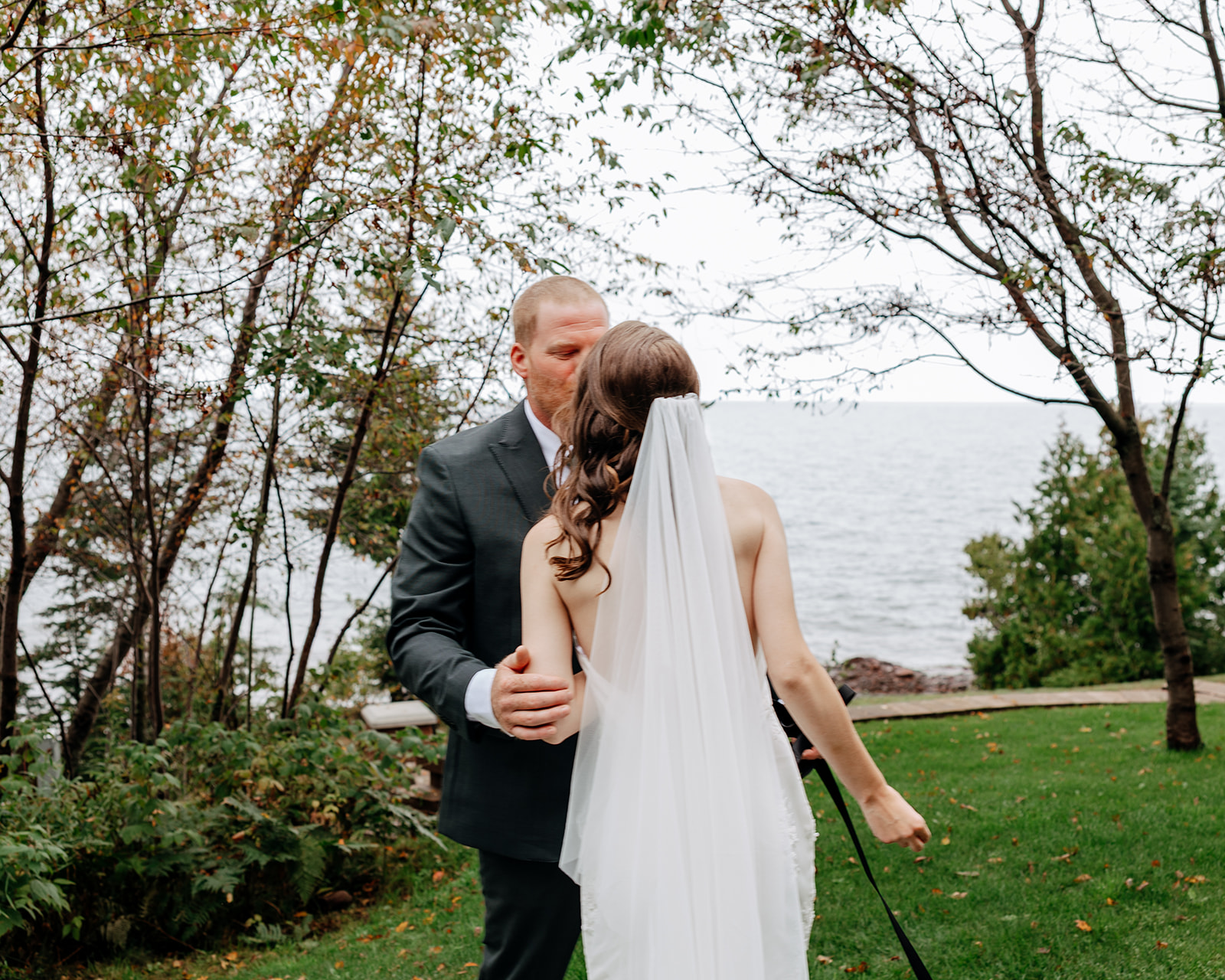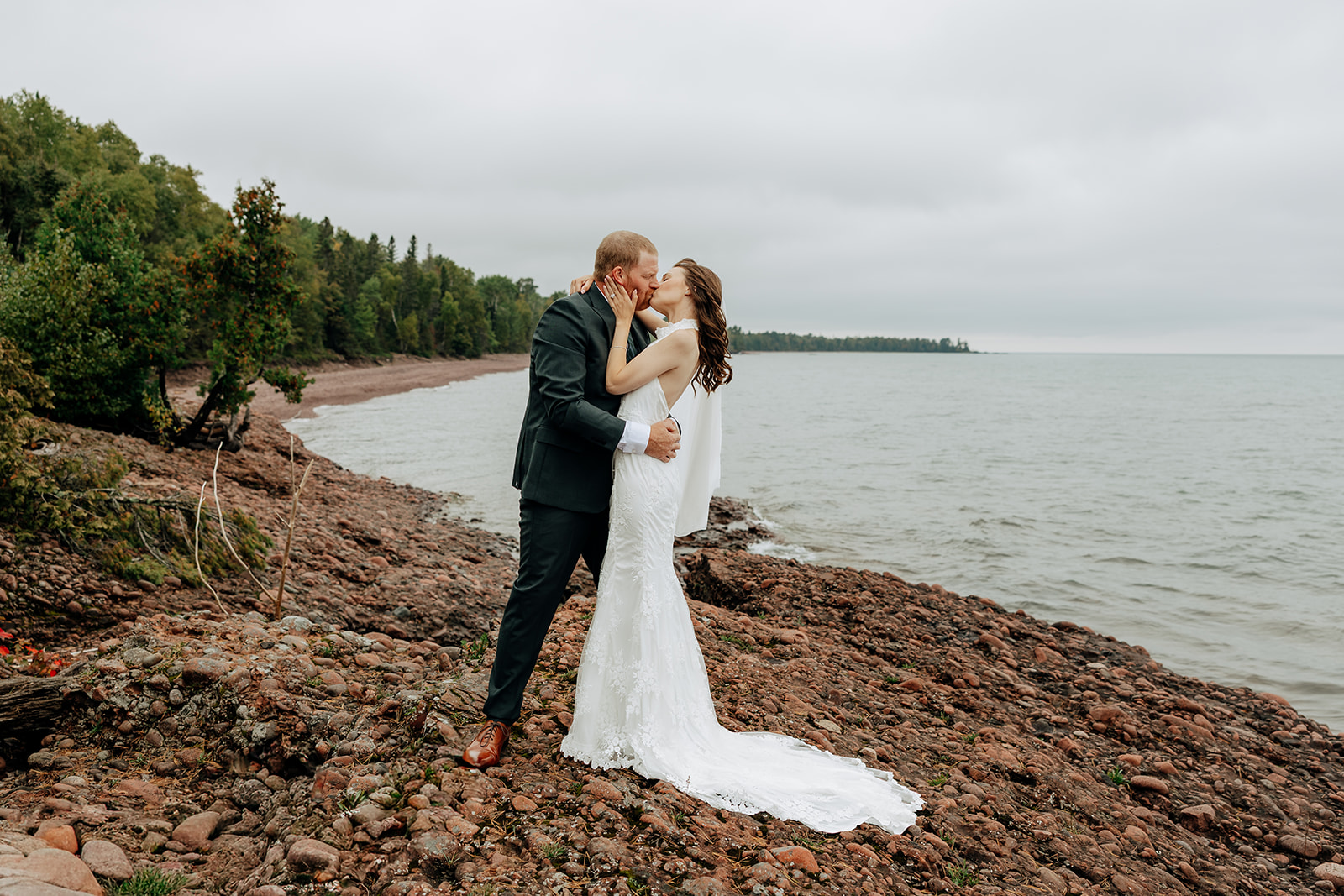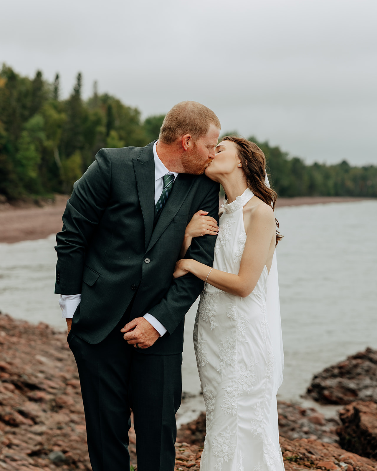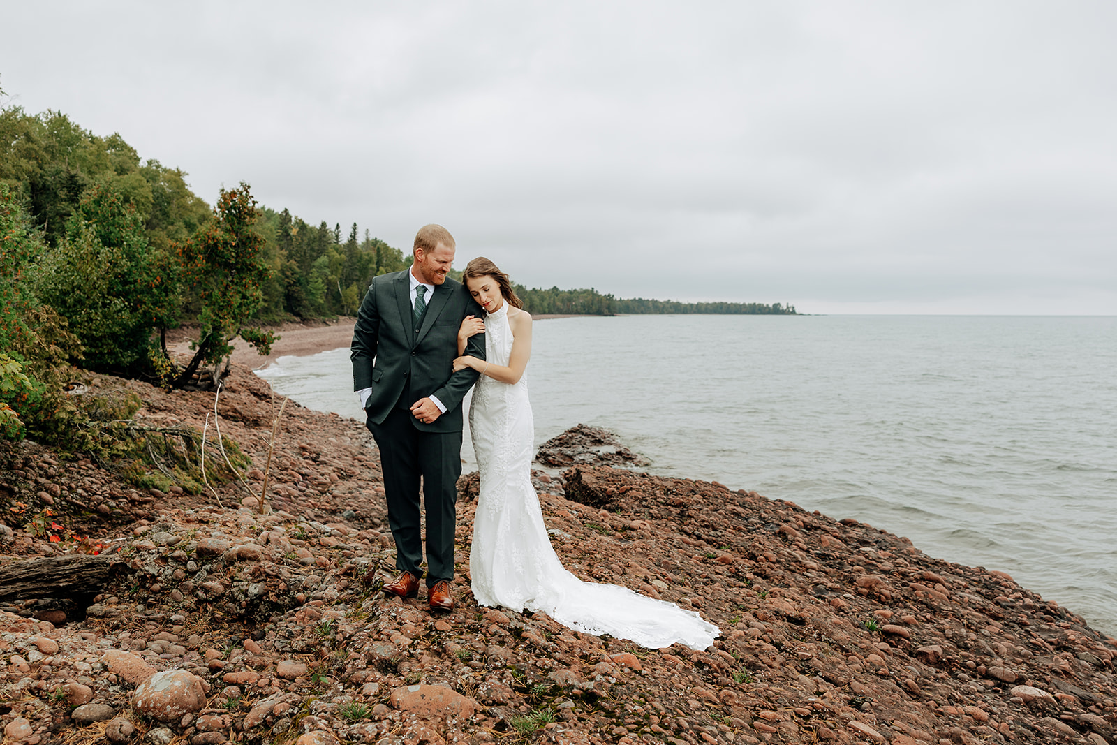 From the castle, we walked down to the shoreline. The beach offered quiet space and a gorgeous shoreline of Lake Superior. We took some initial portraits here, enjoying the venue and the first feelings of excitement on the day.