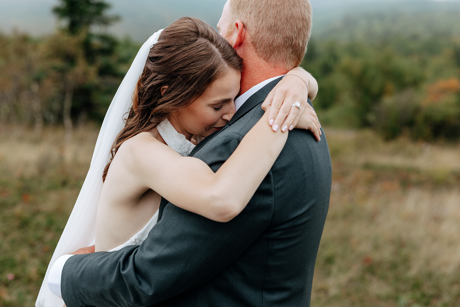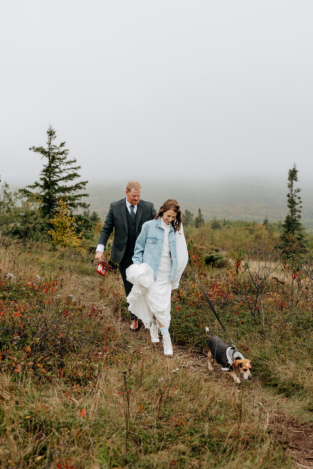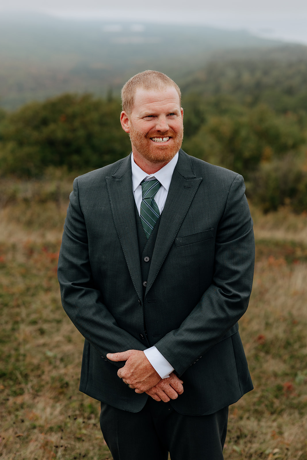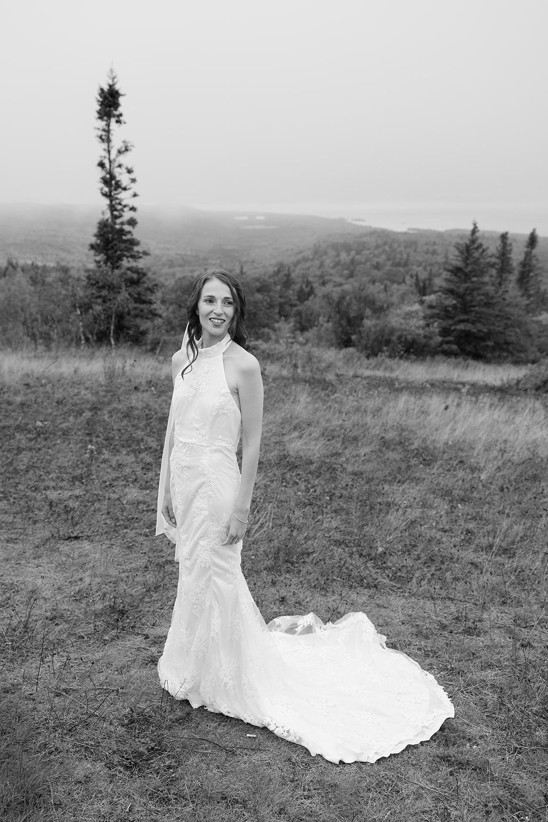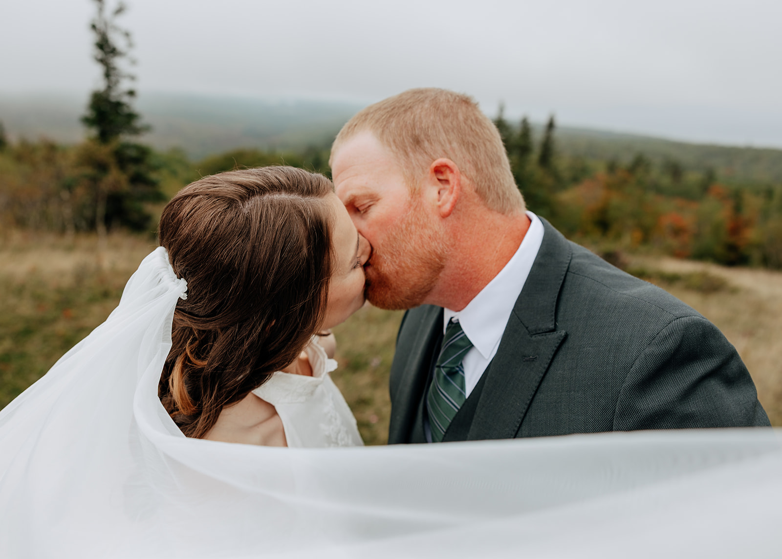 At the top of Brockway Mountain, the view opened up with a little bit of fog, creating a beautiful, moody fall backdrop. Lake Superior stretched out below on either side, and the Keweenaw Peninsula felt quiet and still. Copper Harbor had always been a place Crystal and Scott wanted to see, and standing there together, they got to take in a new place and enjoy the stillness of a weekday elopement.