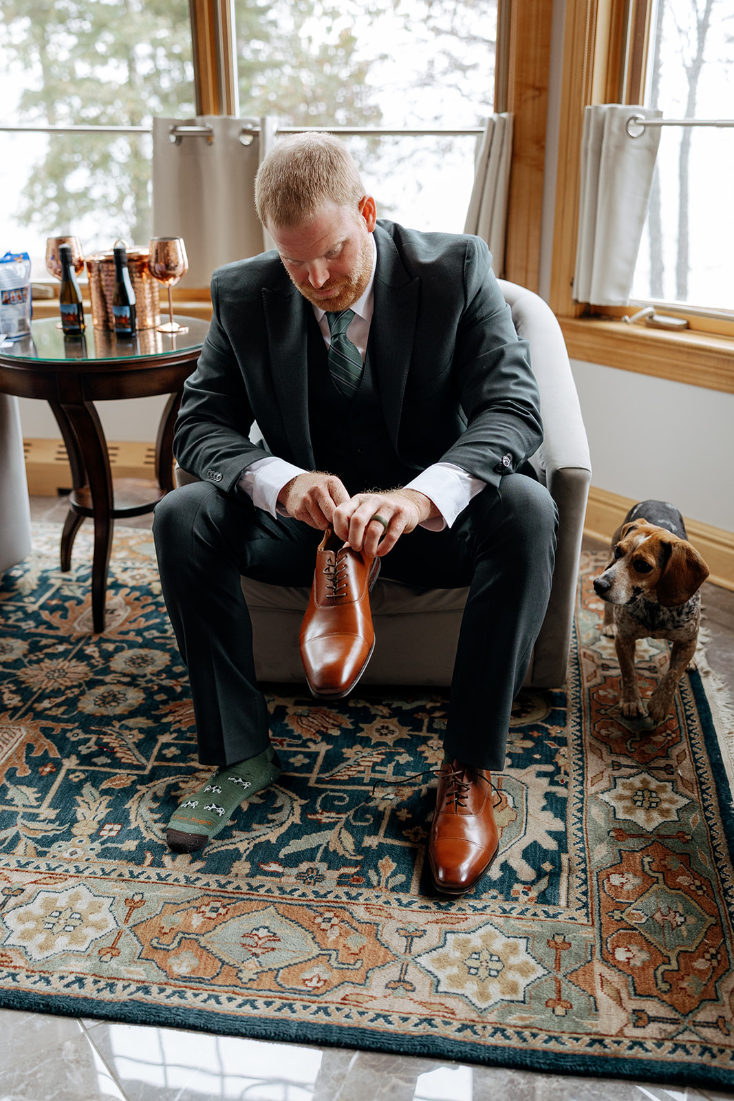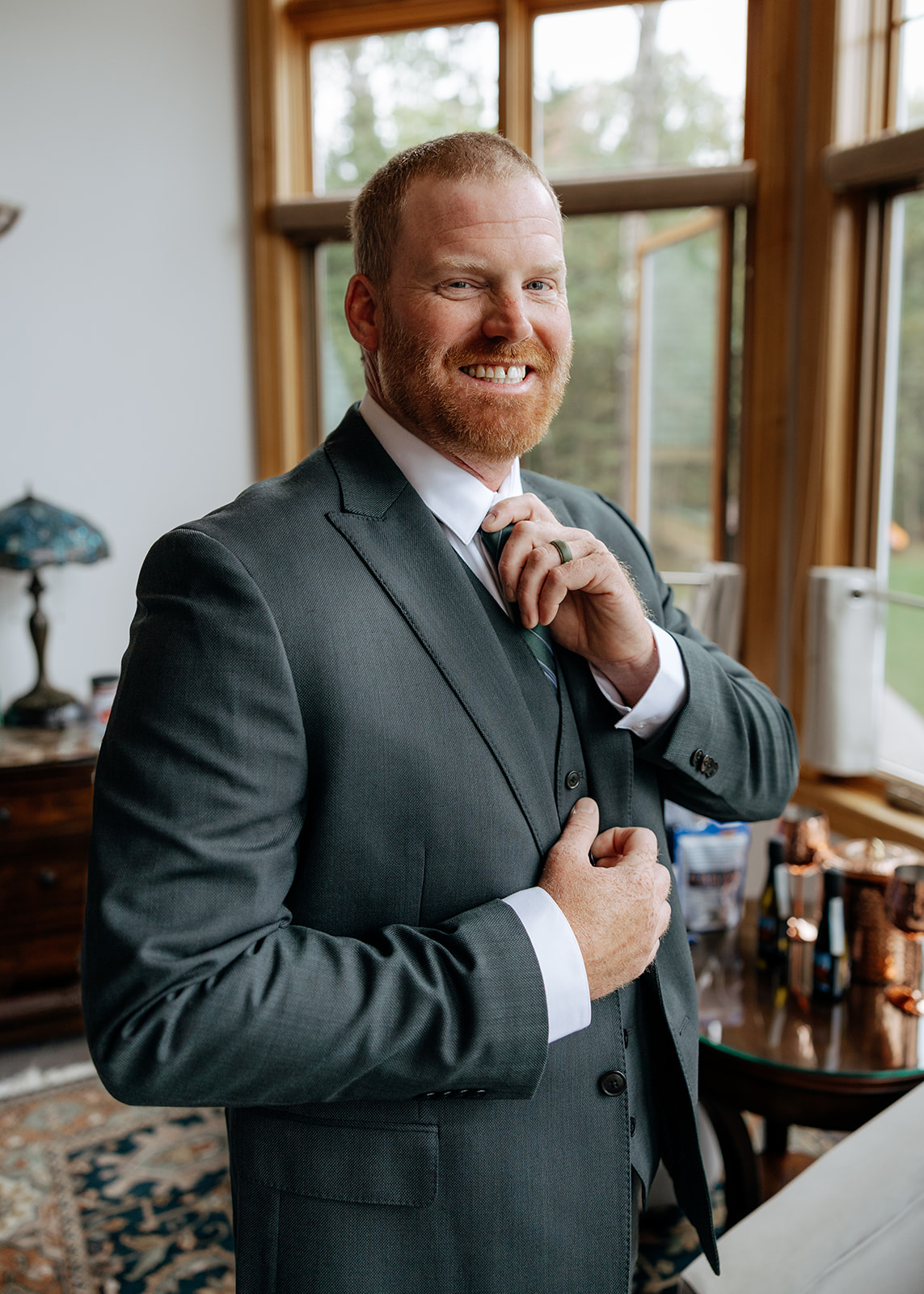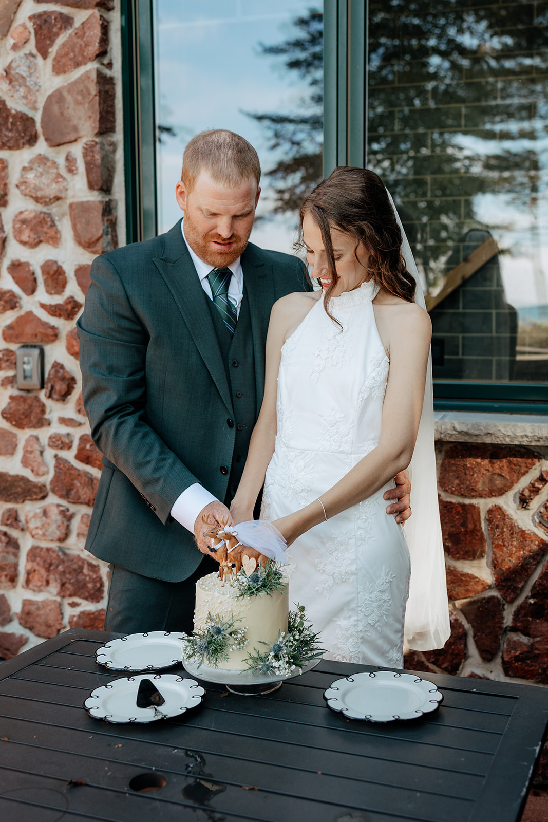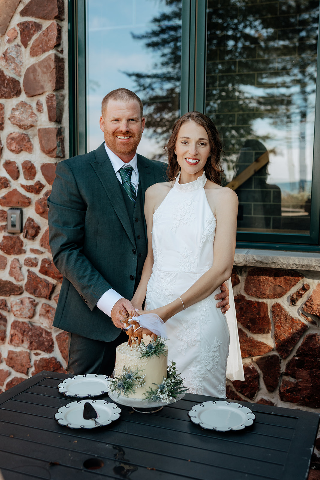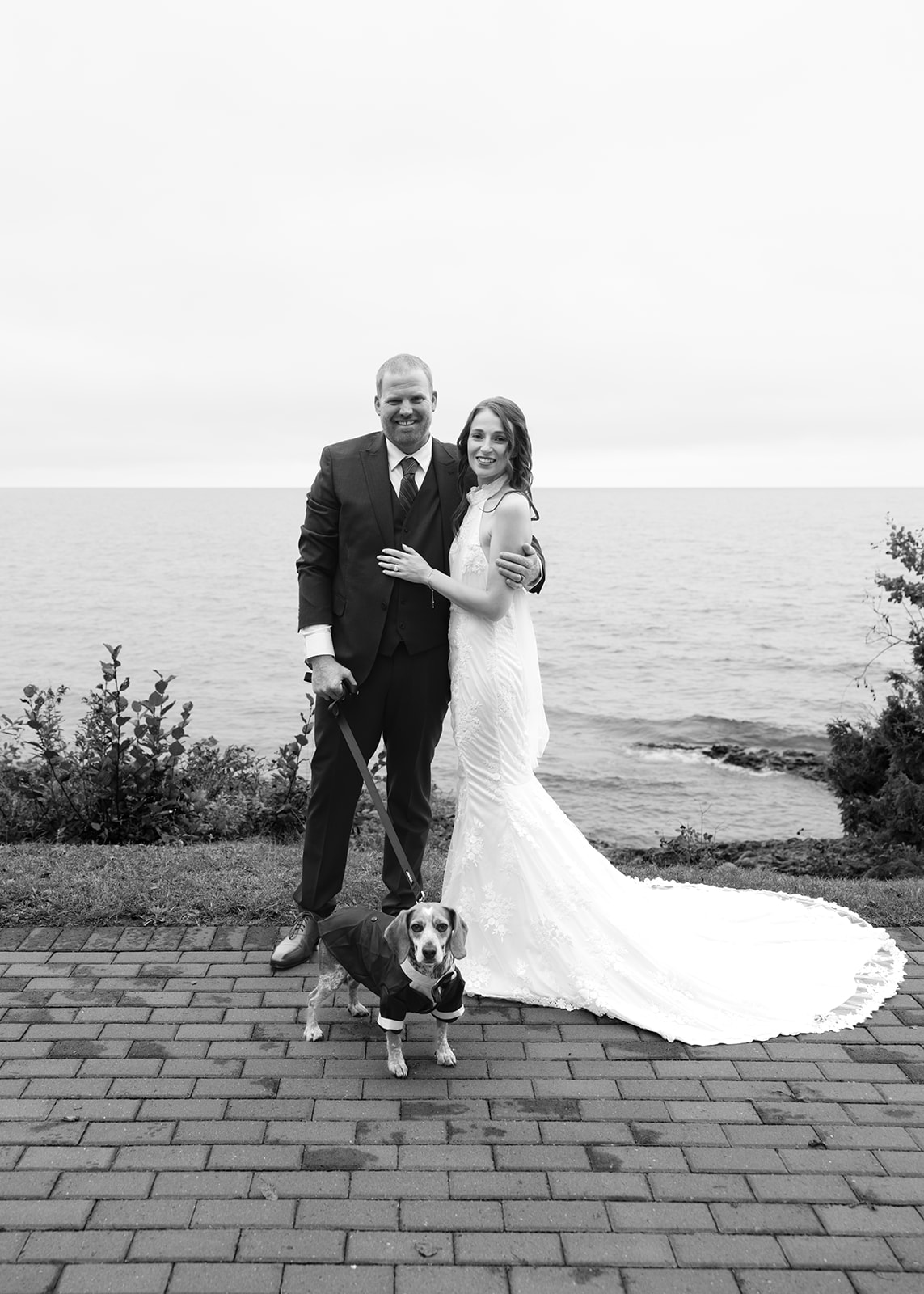 Crystal and Scott got ready at Keweenaw Castle, a venue chosen not just because it’s a beautiful backdrop, but for its calm, supportive atmosphere. Scott put on his suit and stepped outside to take in the view of Lake Superior while Crystal finished getting ready inside. Crystal had chosen a new dress for the day, something special just for this celebration, and a surprise for Scott. When she stepped outside with PhilLee — dressed in his own outfit — Scott saw her for the first time. It was quiet and entirely their own.