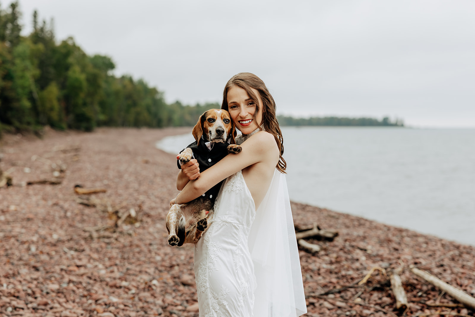 Crystal and Scott had already been married in a civil ceremony weeks earlier, during a season of life that felt heavy and uncertain. Health challenges, decisions that couldn’t wait, and the weight of everyday responsibilities had taken priority. Still, they wanted space to celebrate their marriage in a way that felt meaningful to them. Not with a crowd. Not with a timeline packed full. Just the two of them, their dog PhilLee, and the quiet of Michigan’s Upper Peninsula.